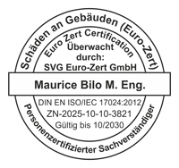 Personenzertifizierter Sachverständiger (Euro-Zert) für Schäden an Gebäuden